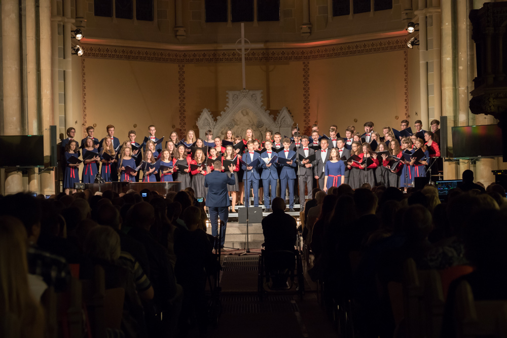 „Sine musica nulla vita“ oder auf deutsch: ohne Musik kein Leben. So der Titel unseres diesjährigen Herbstkonzertes und tatsächlich steht genau diese Aussage auch für die Musiker des CWG, denn nach nur 5 Wochen Arbeit im neuen Schuljahr präsentierten sich alle 3 Chöre in neuer Formation motiviert und bestmöglich vorbereitet ihrem Publikum. Chorgesang gehört zum Schwerpunktfach und damit zum Leben unserer Schüler der vertieft musischen Ausbildung. Bereits das erste Stück, dessen Titel gleichzeitig als Konzertmotto galt, zeigte den gewohnten hohen Anspruch, den Chorleiter Simon Voigtländer an seinen Jugend-und Kammerchor stellt. Der Komponist Prof. Jens Marggraf aus Halle höchstpersönlich ließ es sich dann natürlich auch nicht nehmen der Aufführung seines sehr experimentellen Stückes beizuwohnen. Das Experiment gelang, denn die Kirche war sogleich mit Klang und Leben erfüllt.