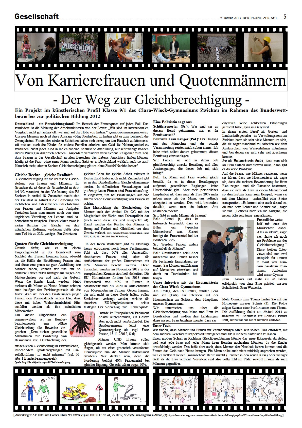 „Von Karrierefrauen und Quotenmännern“ gestalteten die Schüler eine Zeitungsseite mit Comics, die dann im Informatikunterricht digitali-
